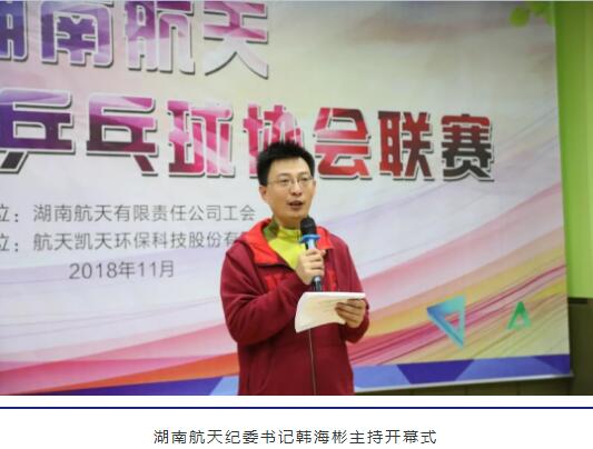 11月17日,湖南航天首屆職工乒乓球協(xié)會(huì)聯(lián)賽在湖南冠能乒乓球俱樂部隆重舉行,本次比賽由湖南航天工會(huì)主辦,航天凱天承辦。開幕式由湖南航天紀(jì)委書記韓海彬主持。