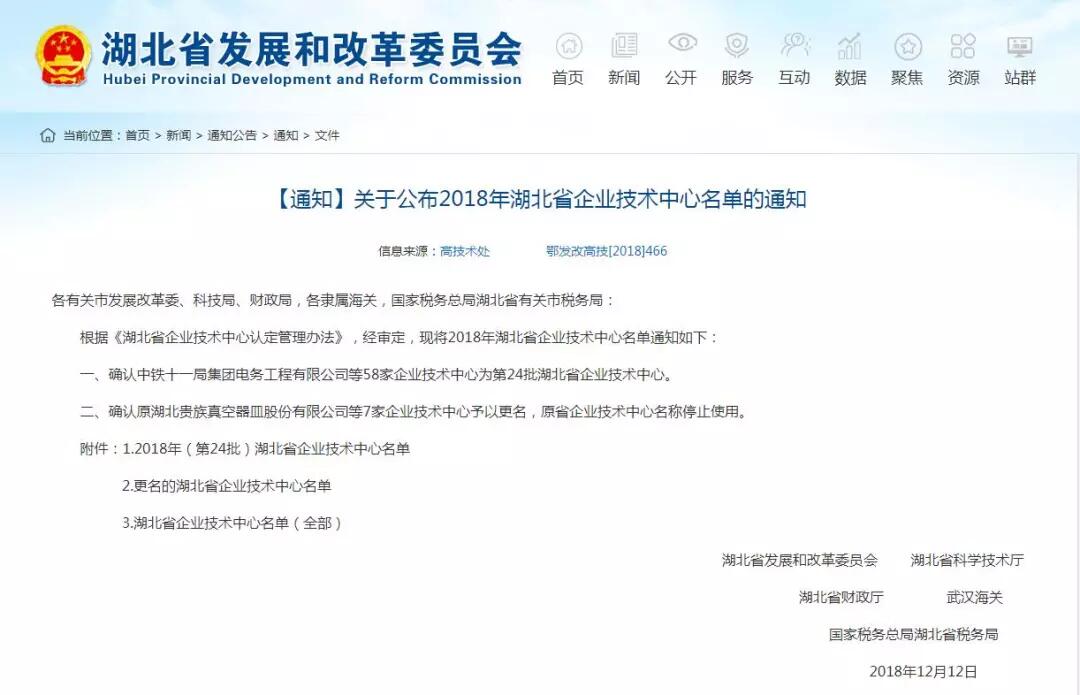 12月12日,湖北省發(fā)展和改革委員會(huì)發(fā)布了《2018年(第24批)湖北省企業(yè)技術(shù)中心認(rèn)定名單》,進(jìn)行網(wǎng)上公示,共58家企業(yè)入選,武漢磁電公司位列第4。