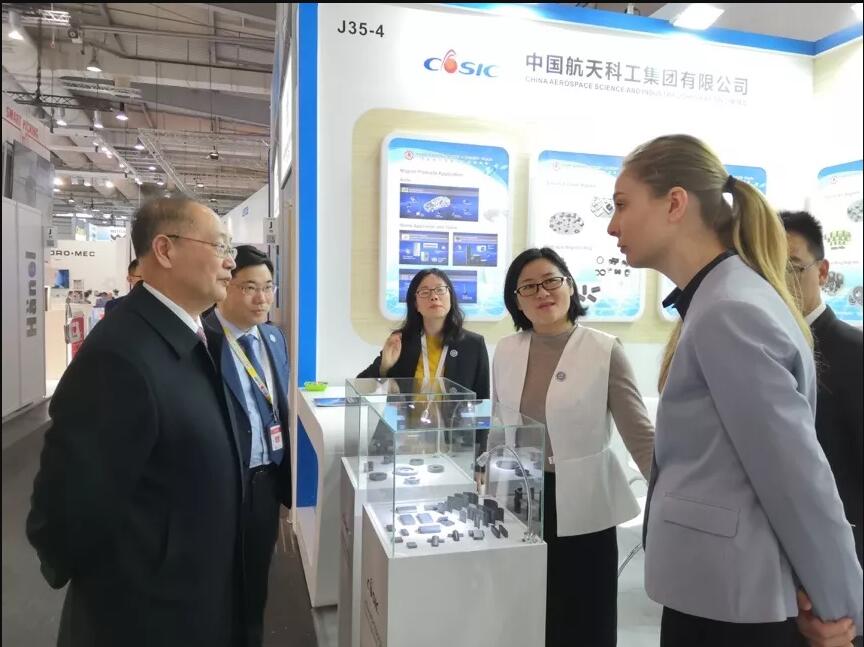 湖南磁電此次參展由湖南航天總會(huì)計(jì)師嚴(yán)波帶隊(duì)。展會(huì)第一天,中國航天科工集團(tuán)副總經(jīng)理魏毅寅親臨展位指導(dǎo),嚴(yán)波向魏總詳細(xì)介紹了湖南磁電公司的產(chǎn)品和市場拓展情況,魏總對湖南磁電的展臺設(shè)計(jì)表示了贊許,希望湖南磁電繼續(xù)加強(qiáng)國際化運(yùn)營,大力拓展歐洲市場。