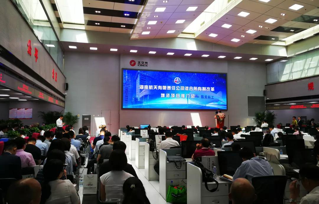 2019年7月2日一早,北京產(chǎn)權(quán)交易所(以下簡(jiǎn)稱(chēng)“北交所”)人頭攢動(dòng),來(lái)自全國(guó)133家機(jī)構(gòu)的257位投資人集聚于此,上午10時(shí),在北交所央企中心主任陳春雷的主持下,湖南航天有限責(zé)任公司混合所有制改革,增資項(xiàng)目推介會(huì)正式開(kāi)始。