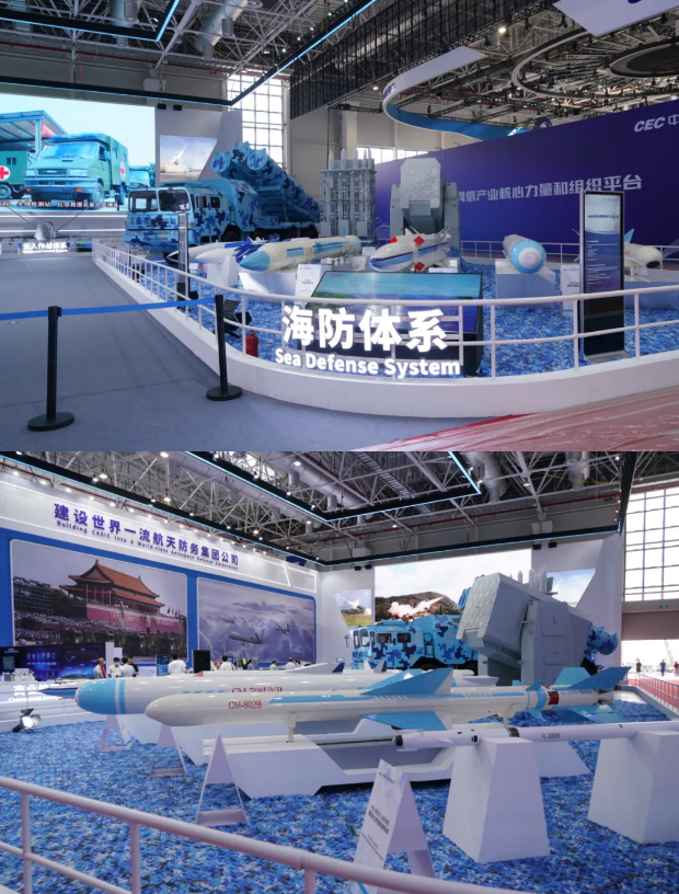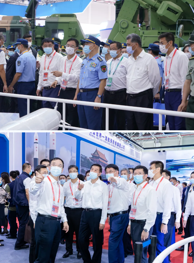 許其亮、王勇和軍隊、地方、上級機關(guān)領(lǐng)導(dǎo)視察中國航天科工展廳。中國航天科工集團有限公司攜全域攻防裝備七大體系、113項裝備展品重磅亮相,以HQ-9BE遠程防空導(dǎo)彈武器系統(tǒng)、YJ-18E潛射導(dǎo)彈武器系統(tǒng)等大國重器為代表的50余型先進裝備首次亮相,全面展示中國航天科工在加快武器裝備現(xiàn)代化建設(shè)和航天強國建設(shè)等方面的發(fā)展成果,充分詮釋“踐行初心使命,推動高質(zhì)量發(fā)展,建設(shè)世界一流航天防務(wù)集團公司”的參展主題。