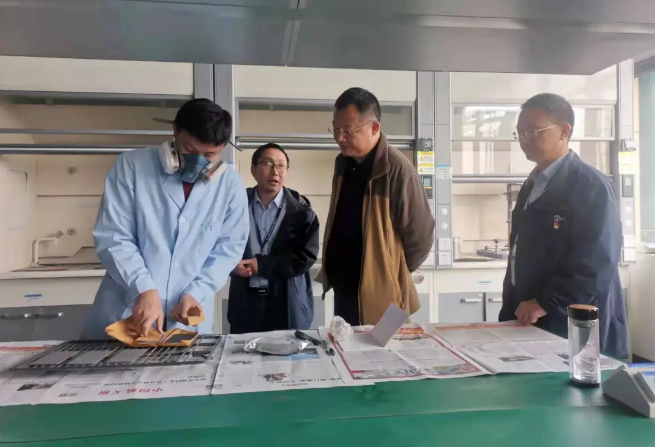 隨后,陳波參觀了三豐公司涂料研發(fā)實(shí)驗(yàn)室,與正在開(kāi)展實(shí)驗(yàn)的研發(fā)人員進(jìn)行了親切交流。最后,陳波一行來(lái)到會(huì)議室與公司領(lǐng)導(dǎo)進(jìn)行座談交流。會(huì)上,三豐公司領(lǐng)導(dǎo)班子分別從公司基本情況、重點(diǎn)產(chǎn)品、科技創(chuàng)新、承接重點(diǎn)任務(wù)、黨建、人事及安全等方面進(jìn)行了工作匯報(bào)。本部部門(mén)領(lǐng)導(dǎo)等同志對(duì)公司預(yù)研工作和質(zhì)量工作提出了很多寶貴意見(jiàn)。