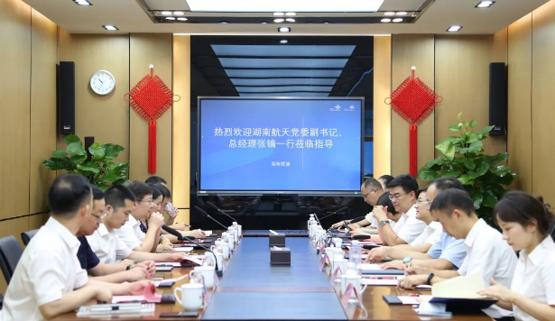 近日,航天通信黨委委員、副總裁王群一行與湖南航天開(kāi)展業(yè)務(wù)交流對(duì)接。湖南航天副總經(jīng)理鄭自儒、資深專(zhuān)務(wù)羅傳勇陪同,航天通信本部及所屬各單位相關(guān)領(lǐng)導(dǎo)、湖南航天本部產(chǎn)業(yè)國(guó)際部等相關(guān)部門(mén)負(fù)責(zé)人、部分所屬單位領(lǐng)導(dǎo)參加活動(dòng)。