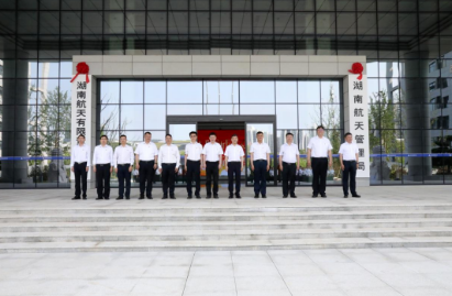 升旗儀式之后進行了簡短的新園區(qū)揭牌儀式。中國航天建設集團黨委書記、董事長李治國,中國航天建設集團黨委委員、副總經(jīng)理宋友軍,湖南航天黨委書記、董事長焦繼革,湖南航天黨委副書記、總經(jīng)理張鏑共同為新園區(qū)揭牌。