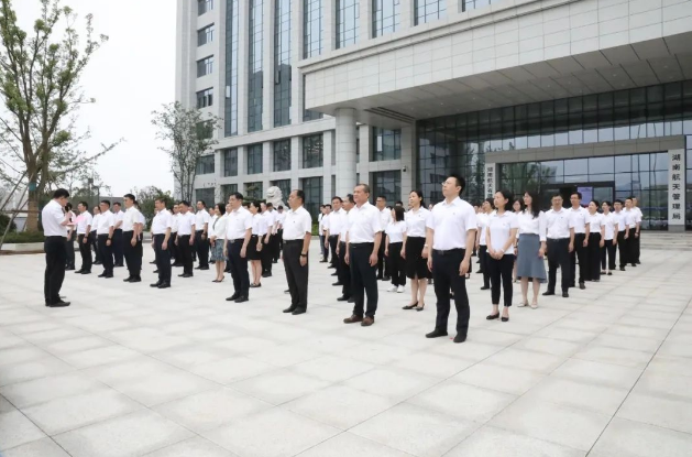 6月19日,湖南航天在新產(chǎn)業(yè)園隆重舉行升旗儀式,慶祝湖南航天成立53周年。湖南航天全體在家領(lǐng)導(dǎo)、本部全體人員、入駐新園區(qū)各單位領(lǐng)導(dǎo)班子成員參加。儀式由湖南航天黨委副書記、總經(jīng)理張鏑主持。