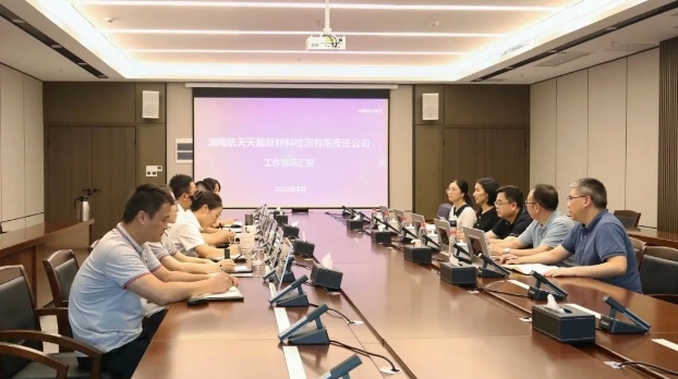 會(huì)前,鮑斌深入天麓公司材料力學(xué)、電磁兼容、元器件篩選等檢測(cè)實(shí)驗(yàn)室,詳細(xì)了解國(guó)家新材料測(cè)試評(píng)價(jià)平臺(tái)湖南區(qū)域中心和裝備質(zhì)量保障服務(wù)平臺(tái)建設(shè)情況,并與檢測(cè)一線技術(shù)人員現(xiàn)場(chǎng)溝通交流。