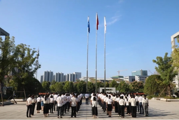 上午8點(diǎn)40分,伴隨著雄壯的《義勇軍進(jìn)行曲》和激昂的《中國(guó)航天科工之歌》,鮮艷的五星紅旗和集團(tuán)公司司旗先后冉冉升起,全體人員列隊(duì)行注目禮。