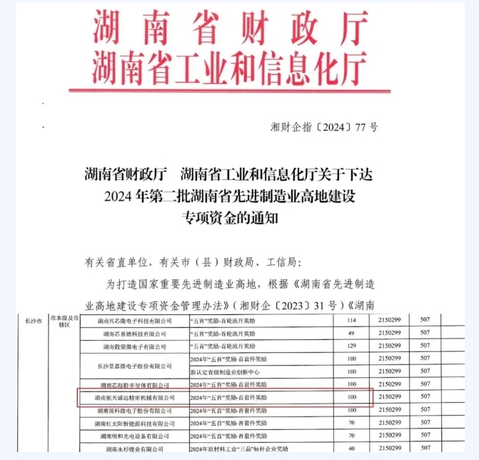 近日,湖南省財(cái)政廳、湖南省工業(yè)和信息化廳下達(dá)了2024年第二批湖南省先進(jìn)制造業(yè)高地建設(shè)專項(xiàng)資金的通知,誠(chéng)遠(yuǎn)公司申報(bào)的湖南省首套基礎(chǔ)電子元器件獎(jiǎng)勵(lì)項(xiàng)目榜上有名,獲批專項(xiàng)資金100萬元。該產(chǎn)品采用誠(chéng)遠(yuǎn)公司高性能金屬基復(fù)合材料,對(duì)加快航天航空新材料領(lǐng)域的發(fā)展具有重大意義。