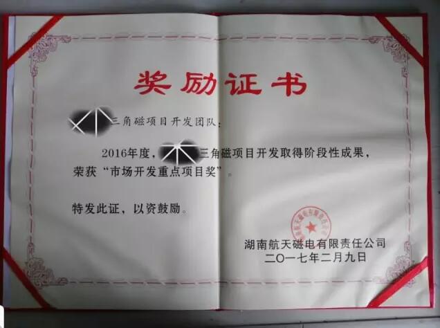 作為市場開拓的兩柄利劍,湖南磁電公司市場營銷事業(yè)部與項目部劍指國際國內(nèi)目標客戶,憑借豐富的市場經(jīng)驗,強化客戶需求分析,充分發(fā)揮自身技術(shù)、產(chǎn)品和航天磁品牌優(yōu)勢,采取客戶開發(fā)分級管理方法,建立重點開發(fā)項目周調(diào)度工作機制,強化部門間的協(xié)同配合,加快市場反應(yīng)速度,共同開發(fā)新客戶、新項目,并取得了喜人的成績,其中三角磁、方塊磁等重點項目開發(fā)團隊被公司授予2016年度“市場開發(fā)重點項目獎”。