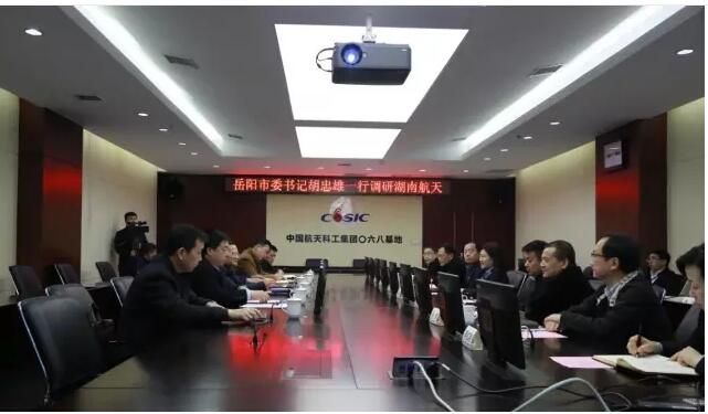 3月17日,岳陽市委書記胡忠雄率岳陽市領(lǐng)導(dǎo)班子一行6人調(diào)研湖南航天。湖南航天董事長、總經(jīng)理胡雪梅,黨委書記唐應(yīng)偉、副總經(jīng)理羅傳勇、副總經(jīng)理?xiàng)钸\(yùn)斌、資深專務(wù)鮑定超,局長助理孫鴻、王永森等陪同調(diào)研。