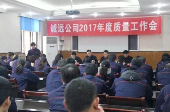 3月22日,誠遠公司組織召開了2017年度質量工作會,公司主管質量工作的黨委書記、副總經(jīng)理丁楚平主持了會議,公司總經(jīng)理和主管生產(chǎn)、財務的副總經(jīng)理出席會議,公司各部門負責人、質量管理員、榮獲年度質量先進集體的代表和所有質量先進個人共計50人參加了會議。