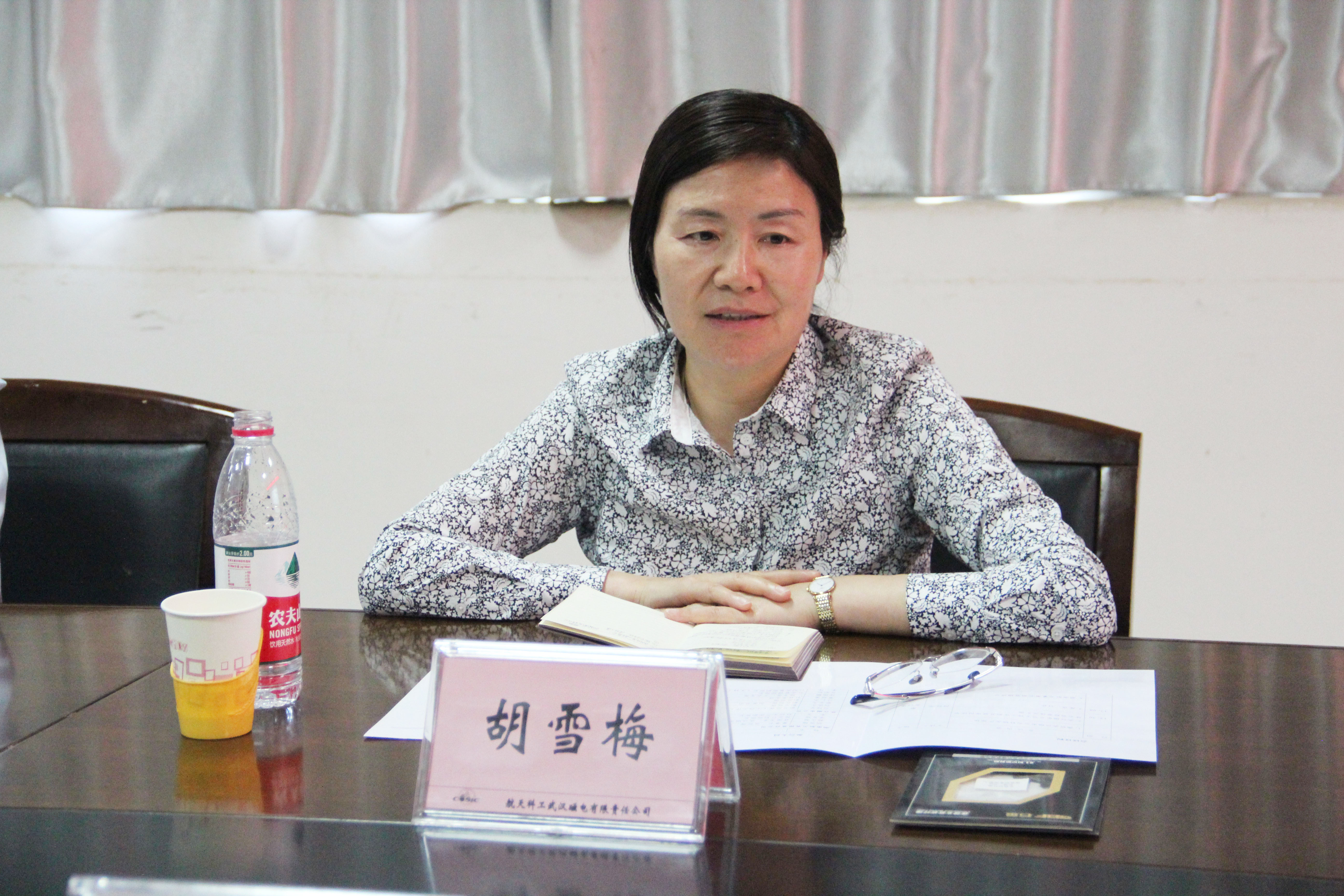 4月24日,湖南航天董事長、總經理胡雪梅,資深專務、武漢磁電公司董事長鮑定超,湖南航天有關部門領導到武漢磁電公司調研。武漢磁電公司在家領導陪同調研作情況介紹。