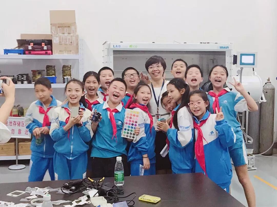 在新材院,博士們用通俗易懂的語言和實驗為孩子們講解了院里開展研究的先進材料的特性與其在航天的應(yīng)用,小學(xué)生代表在指導(dǎo)下用可回收的動力電池制作了屬于自己的航天充電寶。