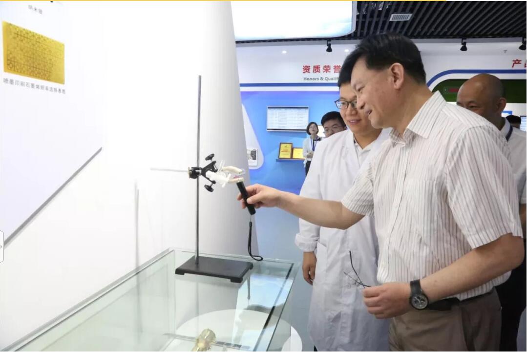 劉漢濱一行先后考察了湖南航天新材料院和三豐公司,聽取了新材料院和三豐公司的亮點(diǎn)成績、創(chuàng)新成果等發(fā)展情況的匯報(bào)。劉漢濱在現(xiàn)場詳細(xì)了解了新材料院與三豐公司各研發(fā)方向的工作進(jìn)展,和研發(fā)人員交流技術(shù)優(yōu)勢和工作中遇到的難點(diǎn)問題,不時給予指導(dǎo),并對取得的成績給予了充分肯定。