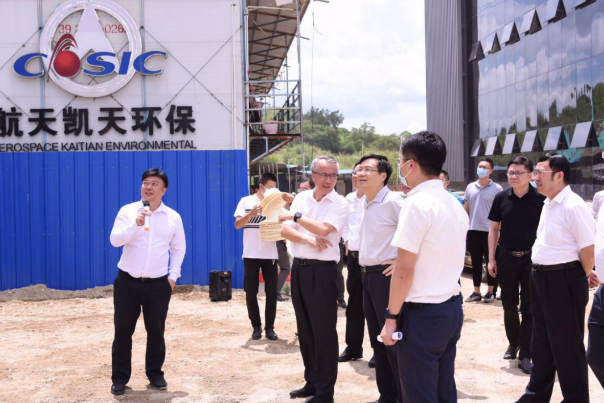6月4日,世界環(huán)境日前夕,揭陽市市委書記蔡朝林,揭陽市委副書記、市長張科,市委副書記陳小峰,市委常委、秘書長劉端雄,副市長吳毅青,普寧市委書記符賢等領(lǐng)導(dǎo)一行蒞臨湖南航天凱天環(huán)保普寧市紡織印染環(huán)保綜合處理中心污水處理廠項(xiàng)目調(diào)研,航天凱天環(huán)保執(zhí)行副總裁藍(lán)斌男、綠色生態(tài)事業(yè)部總經(jīng)理柯艷春陪同參觀。
