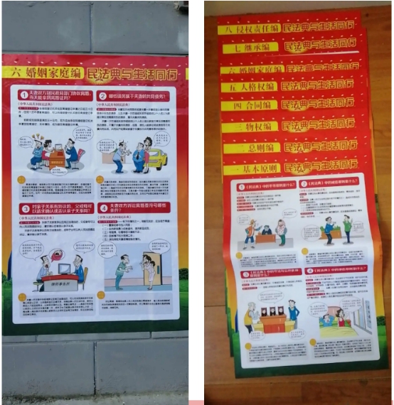 為便于村民更好、更快、更容易理解民法典法條意思,此次活動(dòng)將法條內(nèi)容制作成趣味性對(duì)話式海報(bào),讓民法典進(jìn)入到村民的生活中來(lái),讓更多村民詳細(xì)了解這部與自己生活息息相關(guān)的“社會(huì)生活百科全書(shū)”,增強(qiáng)了村民的法律意識(shí),進(jìn)一步推動(dòng)松溪村形成尊法、守法、學(xué)法、用法、護(hù)法的法治文化氛圍。