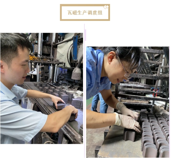 近來瓦磁訂單大幅增加,生產(chǎn)線承受著保質(zhì)保量的巨大壓力。為不造成資源浪費,保證訂單的及時交付,生產(chǎn)部需提前做好合理調(diào)配,這對生產(chǎn)安排及調(diào)度提出了更高的要求。以李蘭副部長為首的調(diào)度組對瓦磁生產(chǎn)進行組織及策劃,利落干練;朱巧媛、石澤龍、田震毅分工負責跟進相應客戶的產(chǎn)品,團結協(xié)作。每月根據(jù)營銷需求合理制定生產(chǎn)計劃,與此同時,也要隨時緊盯各項工作推進情況,跟進各工序節(jié)點;生產(chǎn)過程中遇到難以解決的問題及時進行統(tǒng)籌協(xié)調(diào),不讓問題積壓。無論寒冬酷暑,除制定計劃、核對數(shù)據(jù)以外,大多數(shù)時間他們都在車間現(xiàn)場奔忙,只為更快更好地完成每一筆交貨。車間人手不足的時候,生產(chǎn)部也會以身作則率先示范去各車間支援幫工,是一支做事高效、凝聚力強的隊伍。