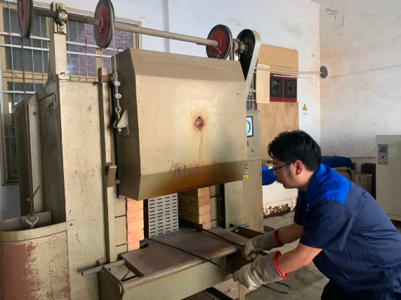 7月以來,氣溫節(jié)節(jié)攀升。湖南磁電廣大員工不懼“烤”驗,用汗水詮釋敬業(yè)“溫度”,以滿腔的熱血、昂揚的斗志,戰(zhàn)高溫、斗酷暑,堅守崗位,全力確保生產(chǎn)經(jīng)營各項任務(wù)有序推進(jìn)。燒結(jié)車間是所有工序中溫度最高的車間,撲面而來的陣陣熱浪,讓人忍不住想馬上逃離,但這里卻是生產(chǎn)工藝人員常年堅守的陣地,他們無懼高溫酷暑,為保障產(chǎn)品質(zhì)量全力奮戰(zhàn)。