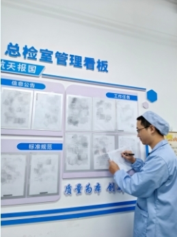 看板是班組的重要信息公布與傳播的窗口,最終檢驗(yàn)班組在總檢室管理看板中下了不少功夫??窗宸珠T別類羅列出各類需班組人員掌握的信息,比如:重點(diǎn)工作欄對(duì)近期的主要和重點(diǎn)工作進(jìn)行公告并及時(shí)更新,對(duì)驗(yàn)收任務(wù)動(dòng)態(tài)跟蹤,讓全組人員能隨時(shí)了解相關(guān)要求;質(zhì)量警示欄統(tǒng)計(jì)了所內(nèi)近三年的各類典型質(zhì)量案例,隨時(shí)提醒班組人員引以為戒,避開“雷區(qū)”;人員信息欄可以讓各部門人員隨時(shí)了解到在生產(chǎn)現(xiàn)場(chǎng)各處的檢驗(yàn)人員去向,確保檢驗(yàn)工作服務(wù)效率及質(zhì)量;檢驗(yàn)具體工作流程圖以簡(jiǎn)潔明了的方式讓組員清晰了解和掌握工作流程及相關(guān)要求,對(duì)統(tǒng)一檢驗(yàn)標(biāo)準(zhǔn)和及時(shí)掌握產(chǎn)品質(zhì)量動(dòng)態(tài)形成了強(qiáng)大助力。