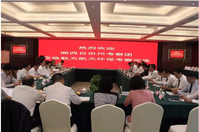5月16日上午,中共第十八屆中央候補(bǔ)委員、湖南湘西自治州委書記葉紅專同志帶隊(duì),州委副書記、州長(zhǎng)龍曉華和州委副書記曹普華等同志參加,組織統(tǒng)戰(zhàn)部、宣傳部、政協(xié)等部門負(fù)責(zé)人及下屬各縣委書記來(lái)航天凱天環(huán)??萍脊煞萦邢薰究疾煺{(diào)研對(duì)接具體環(huán)保項(xiàng)目。湖南航天黨委書記唐應(yīng)偉、副總經(jīng)理宋衛(wèi)武與航天凱天環(huán)??偛萌~明強(qiáng)、常務(wù)副總裁周波平等同志共同參加接待和洽談,共商全面推進(jìn)湘西州綠色、生態(tài)、環(huán)保、智慧城市建設(shè)合作事宜。唐應(yīng)偉在會(huì)上表達(dá)了與湘西州在經(jīng)濟(jì)社會(huì)發(fā)展中的合作意愿,并提出以湖南航天在湘西保靖通壩村的扶貧點(diǎn)為媒介和平臺(tái),在環(huán)保產(chǎn)業(yè)諸多方面進(jìn)行合作,促進(jìn)湘西經(jīng)濟(jì)社會(huì)發(fā)展。 會(huì)議成功舉行,雙方就合作事宜達(dá)成共識(shí)。