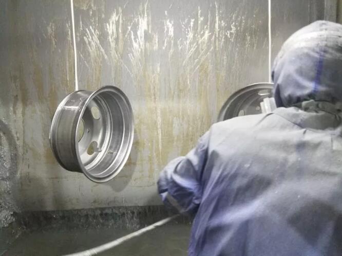 在某旋壓件公司,三豐公司技術(shù)人員進(jìn)行了水性輪轂鋁粉漆的現(xiàn)場(chǎng)試噴,成功通過(guò)客戶的各項(xiàng)測(cè)試。三豐公司水性輪轂鋁粉漆附著力強(qiáng)、光澤度高、外觀可與油性涂料媲美,白度甚至超越油性涂料,得到客戶一致認(rèn)可。