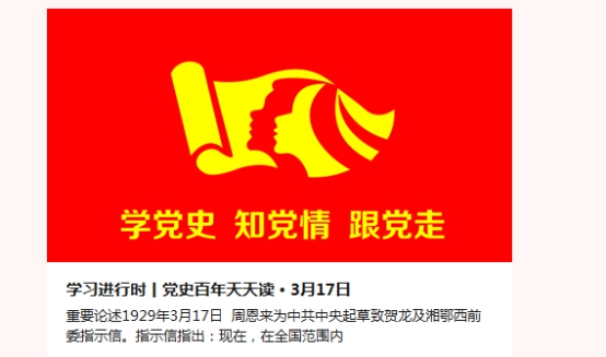 湖南航天全級次圍繞黨史學(xué)習(xí)教育動員部署會精神開展各項(xiàng)主題活動,并制作宣傳標(biāo)語及時在大屏幕、展板等宣傳陣地進(jìn)行布置,確保宣傳內(nèi)容第一時間進(jìn)車間、進(jìn)班組。湖南航天云信公眾號開設(shè)“黨史百年天天讀”專欄,每日發(fā)布黨史學(xué)習(xí)內(nèi)容;引導(dǎo)黨員全面系統(tǒng)學(xué)黨史,以供全體員工學(xué)習(xí),激發(fā)員工學(xué)習(xí)興趣,從黨的奮斗歷史中汲取前行的智慧和力量,以史明今。