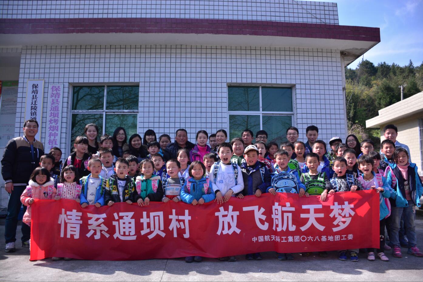 本次愛心助學(xué)志愿活動主題為“情系通壩村、放飛航天夢”,志愿活動由基地團(tuán)工委組織,7801研究所團(tuán)委承辦,來自7801所、遠(yuǎn)望、磁電、誠遠(yuǎn)、航發(fā)、物業(yè)的16名志愿者加入其中。志愿者為通壩村的貧困小學(xué)生們送來了學(xué)習(xí)用品,以及各類課外書籍、練習(xí)冊600余本,并向通壩村村委會捐贈了創(chuàng)建多媒體會議室急需的辦公設(shè)備。在捐贈儀式上,青年志愿者為孩子們準(zhǔn)備了一場生動且富有趣味性的科技小講堂,給孩子們普及航天知識、傳播航天文化。參與活動的貧困學(xué)生十分珍惜這一難得機(jī)會,課堂上個個全神貫注,眼睛里充滿了求知的渴望,大家開心得簇?fù)碓谝黄鹋c志愿者們拼接航天模型,并從志愿者手中接過嶄新的學(xué)習(xí)用品,教室外被前來陪同的村民圍得水泄不通,家長們擠在窗外伸著腦袋高興地望著孩子們,場面十分溫馨和感人。隨后,志愿者深入基地派駐的兩位扶貧工作人員的住所進(jìn)行探望,并為他們送去了水果和食品。在他們的陪同下,參觀了由扶貧工作隊牽線搭橋引進(jìn)的綠色蔬菜產(chǎn)業(yè)基地和生態(tài)旅游施工現(xiàn)場,實(shí)地深入了解了通壩村的未來遠(yuǎn)景規(guī)劃和發(fā)展目標(biāo)。