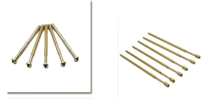 結(jié)構(gòu)特點:內(nèi)置彈簧式伸縮結(jié)構(gòu),針尖多為鍍金 / 鍍鎳材質(zhì),接觸電阻低(≤50mΩ),常用的探針有:P100探針、PL75探針、P160探針、P50燒錄探針等。