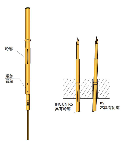 針對不同的測試治具工作行程和測試點,探針套應(yīng)有相應(yīng)的卡環(huán)和壓環(huán)系列,以適應(yīng)不同的安裝高度。