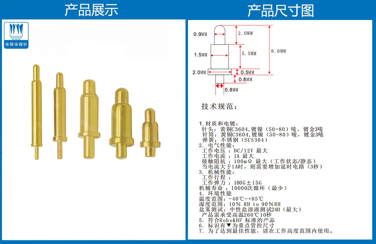 產(chǎn)品介紹:這個針通常用于智能手表,藍牙耳機上的有充電的功能,但是探針總體來說還是測試的
