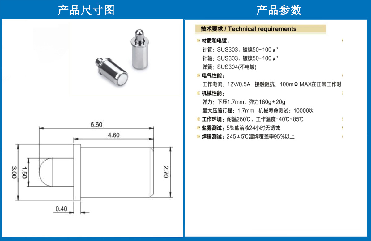 3.0*6.6電極針 當(dāng)前位置:首頁 » POGO PIN充電彈簧頂針 » 電極針