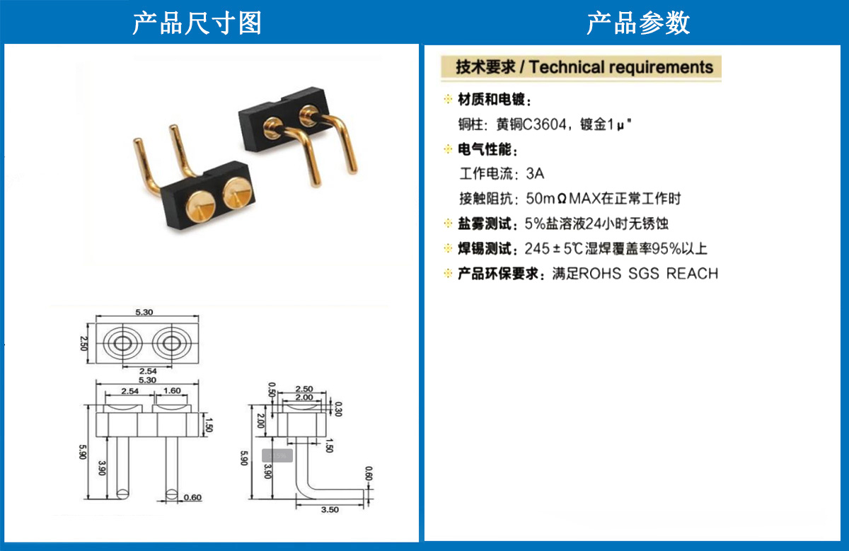 產(chǎn)品介紹:這個針通常用于智能手表,藍(lán)牙耳機(jī)上的有充電的功能,但是探針總體來說還是測試的