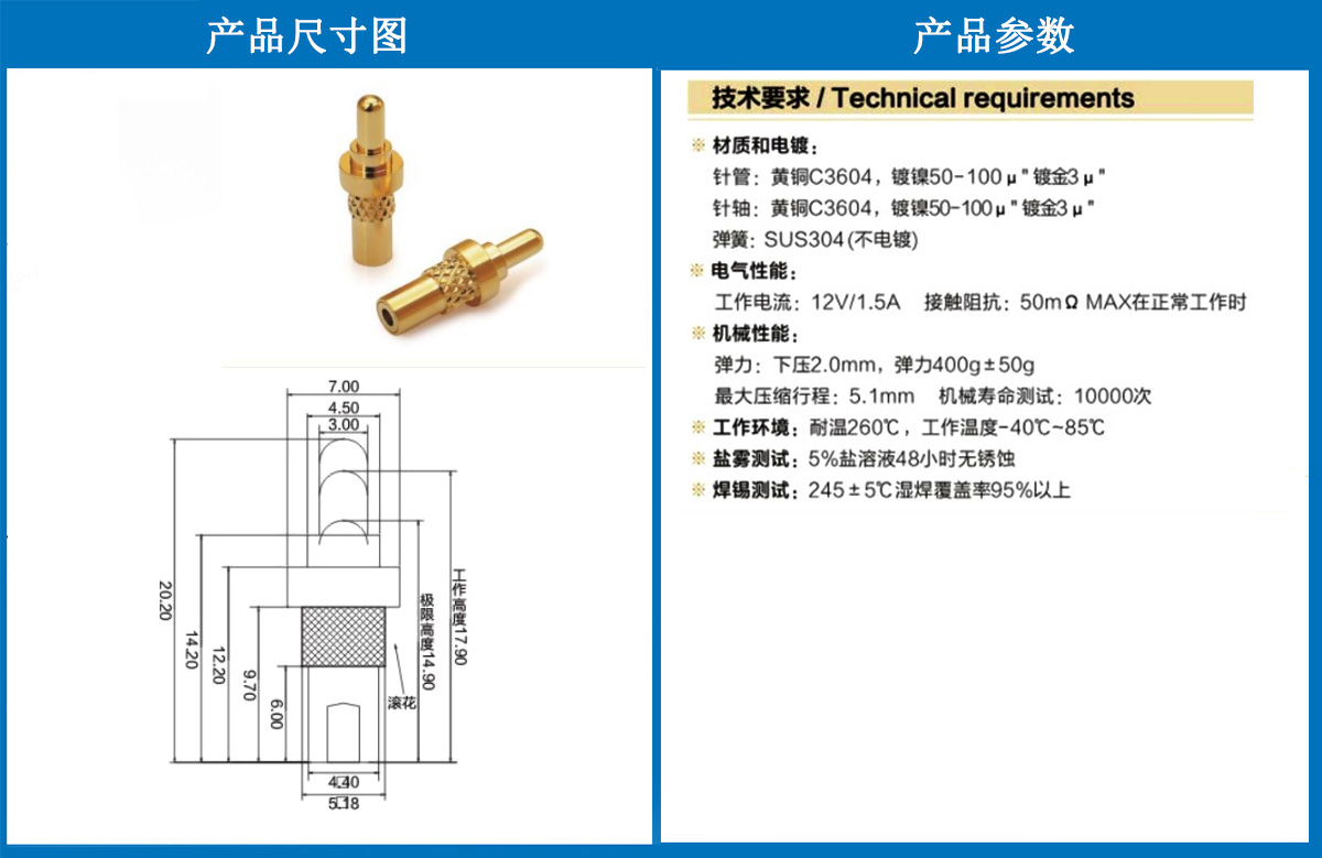 產(chǎn)品介紹:這個(gè)針通常用于智能手表,藍(lán)牙耳機(jī)上的有充電的功能,但是探針總體來(lái)說(shuō)還是測(cè)試的