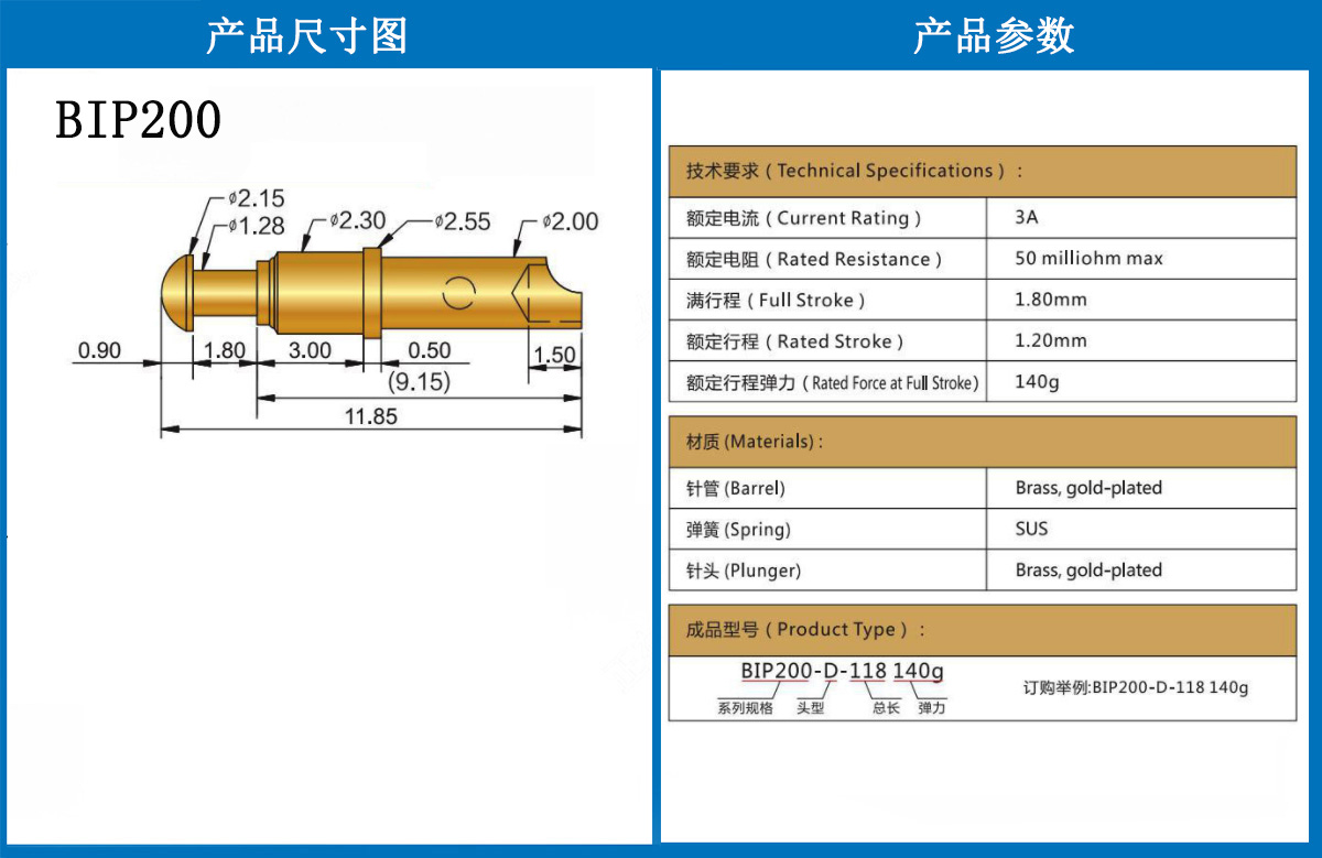 BIP200 當(dāng)前位置:首頁 » POGO PIN充電彈簧頂針
