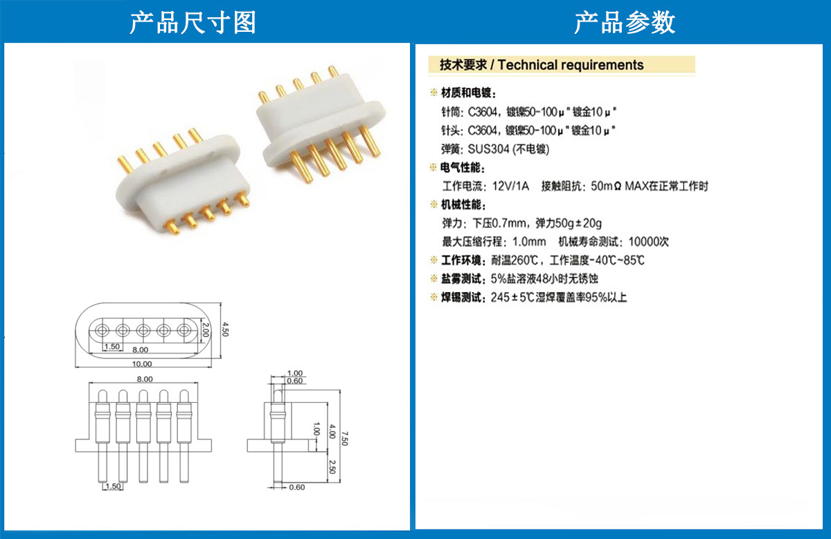 產(chǎn)品介紹:這個針通常用于智能手表,藍(lán)牙耳機(jī)上的有充電的功能,但是探針總體來說還是測試的