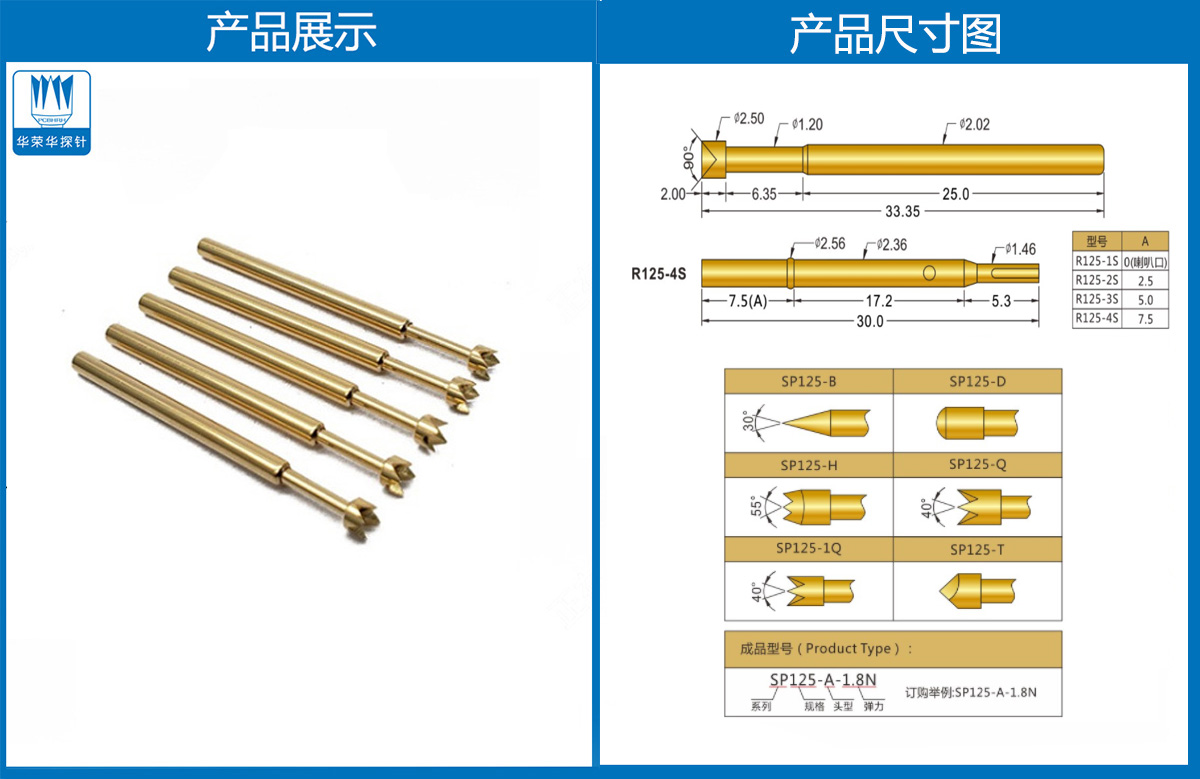 產(chǎn)品簡介:SP125探針、2.02mm測試針、總長33.35mm、彈簧針、測試針、頂針